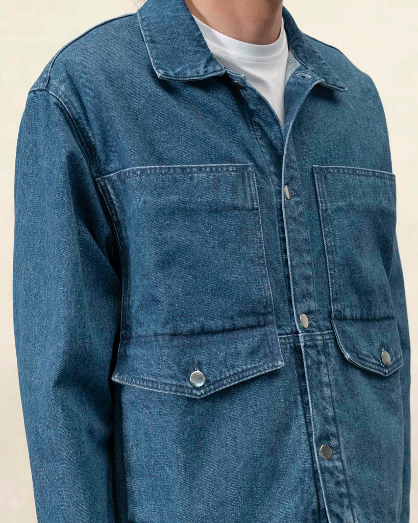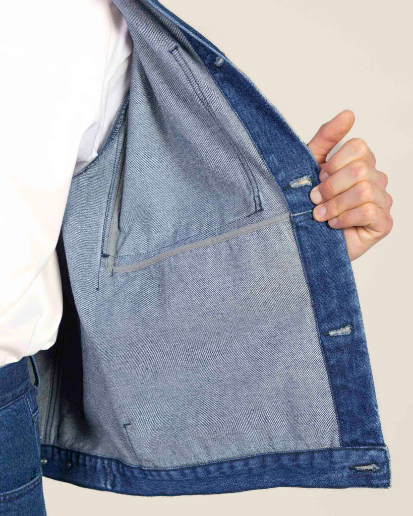 Veste en denim de coton, pratique et confortable, en denim biologique espagnol.