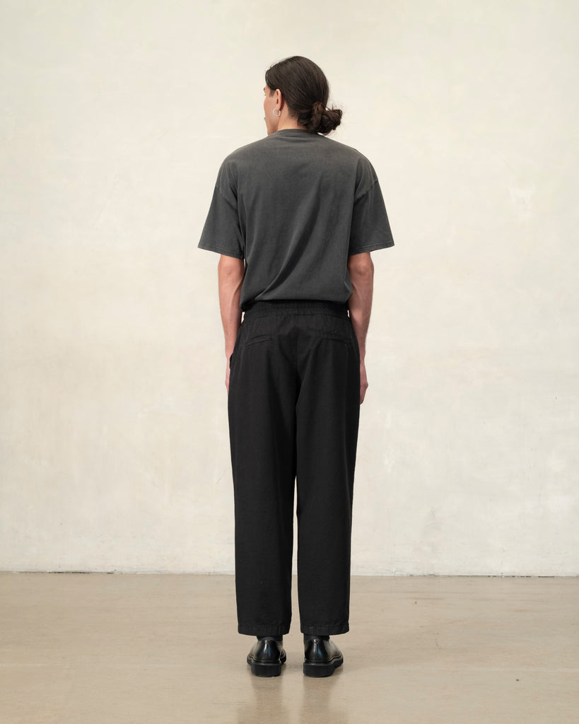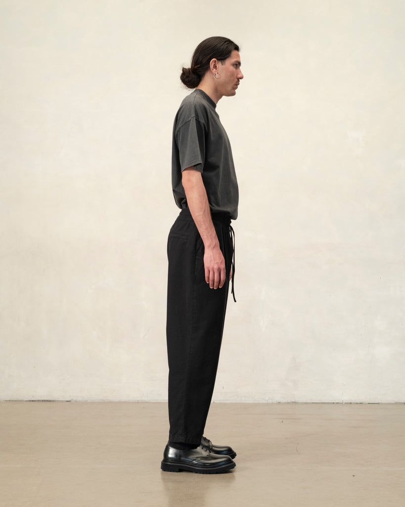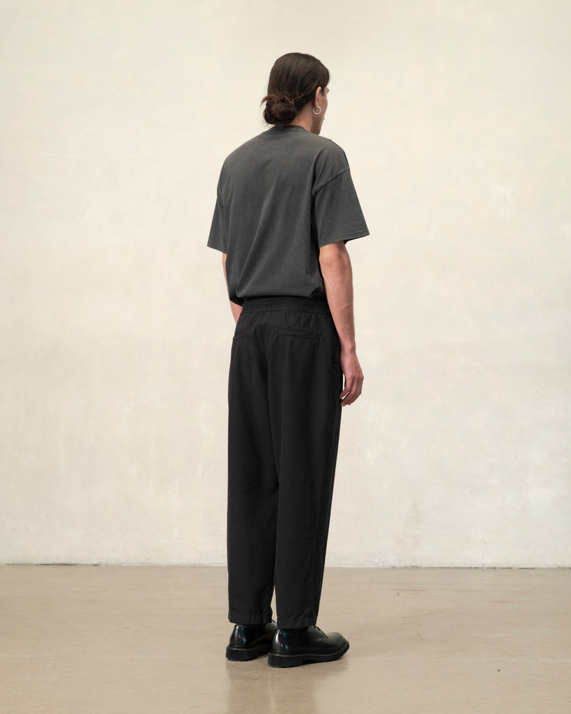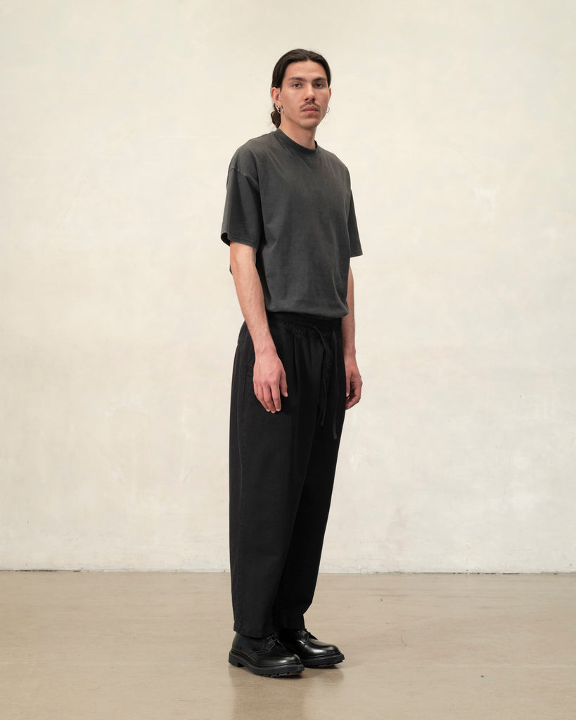 Baggy est un pantalon ample en coton biologique canevas, tissé dans les Vosges (France), teint en pièce de couleur noire.