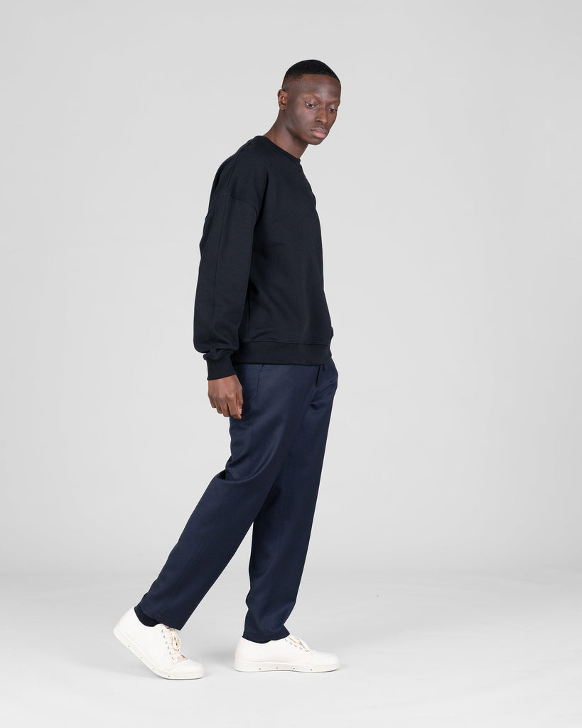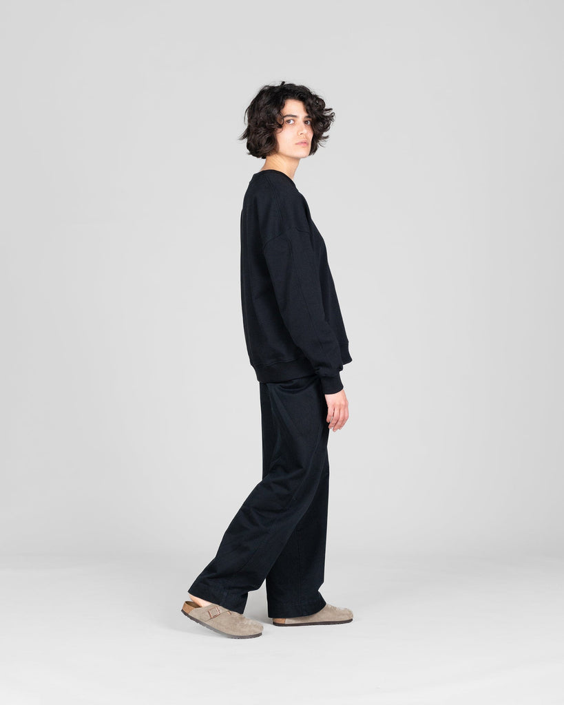 Sweat-shirt à col ras du cou oversize en maille french terry , chaud et léger, parfait pour l'été, avec un bord et un bas côtelés développés exclusivement pour Coltesse. Autres détails : logo Coltesse brodé sur la poitrine, couture d'épaule continue sur la manche.