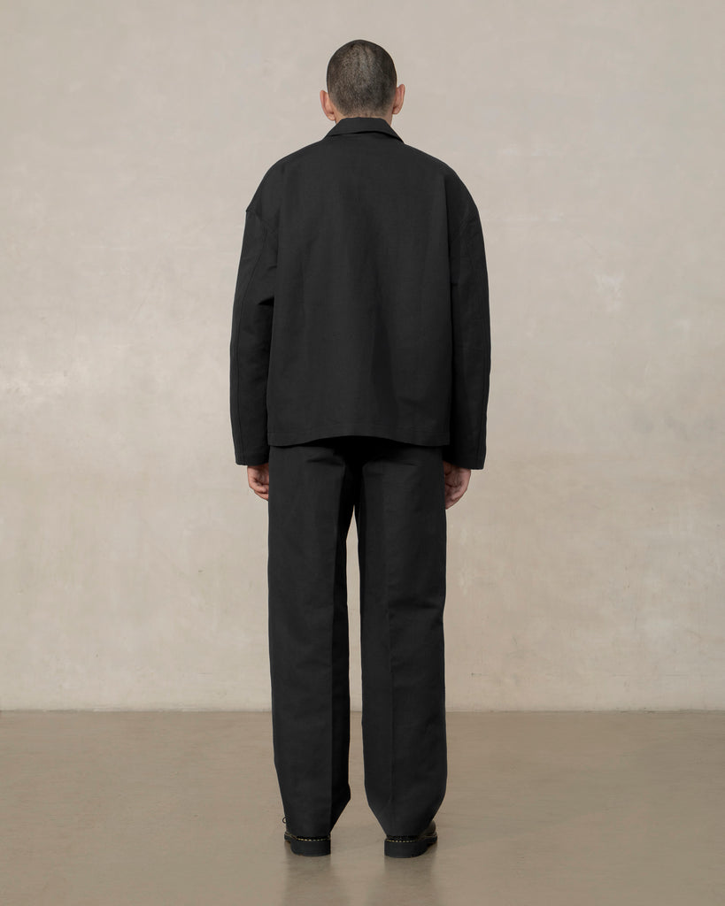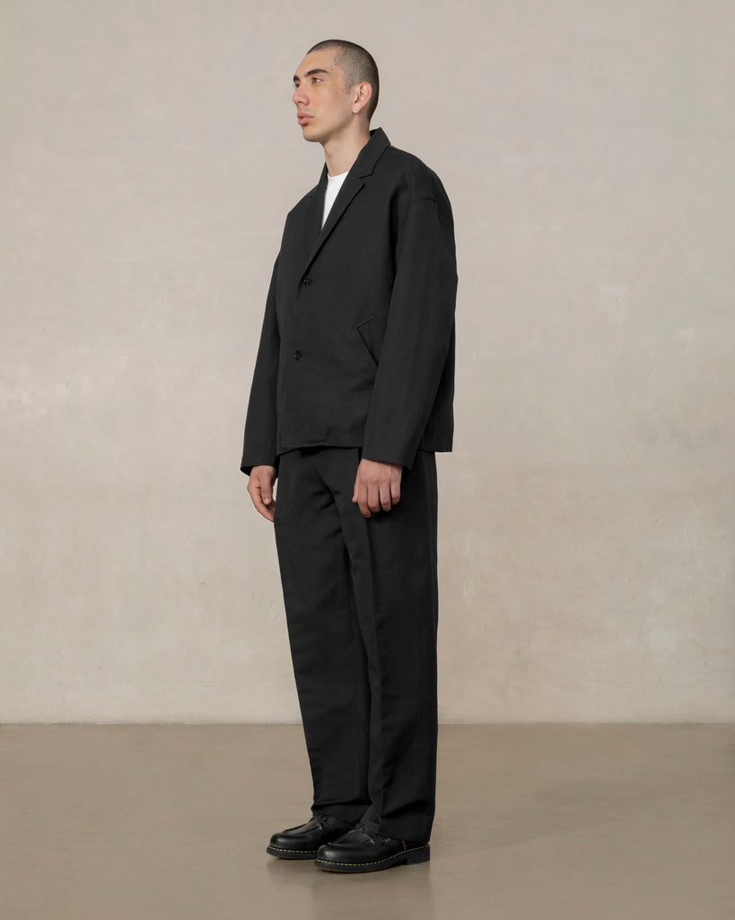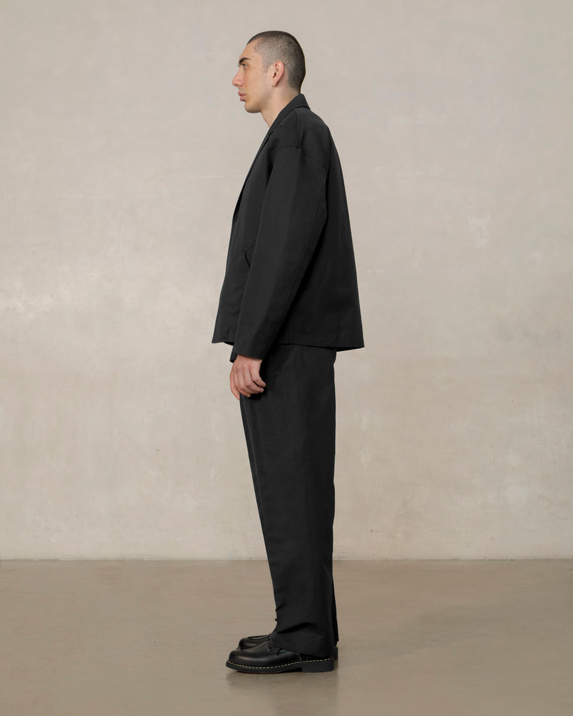 Conçu et fabriqué à la main en France, ce blazer en lin noir est composé d'un mélange de coton et de lin pour un look confortable et élégant qui résistera à l'épreuve du temps. Son tissu léger et respirant garantit un confort tout au long de l'année. La fermeture à deux boutons et les épaules tombantes confèrent à ce blazer une élégance intemporelle. Fini avec des manches arrondies, ce blazer est indispensable à toute garde-robe.