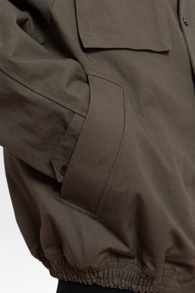 Veste multi-poches confectionnée dans un tissu de coton vert. Cette couleur a été développée pour Coltesse par notre teinturier, basé près de Nantes (France).